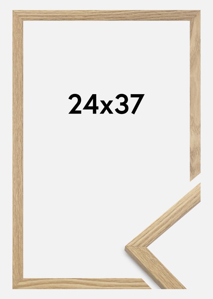 A moldura é feita de material MDF com uma superfície folheada em carvalho e tem um perfil de moldura fino de 14 mm. Há bastante espaço para complementar suas imagens com um passe-partout luxuoso, graças à profundidade interna da moldura de 12 mm.