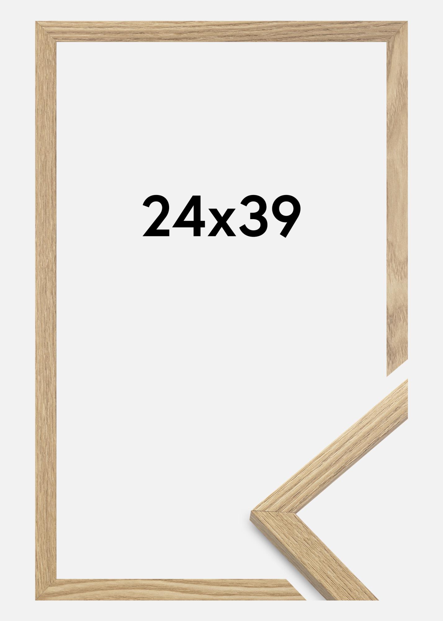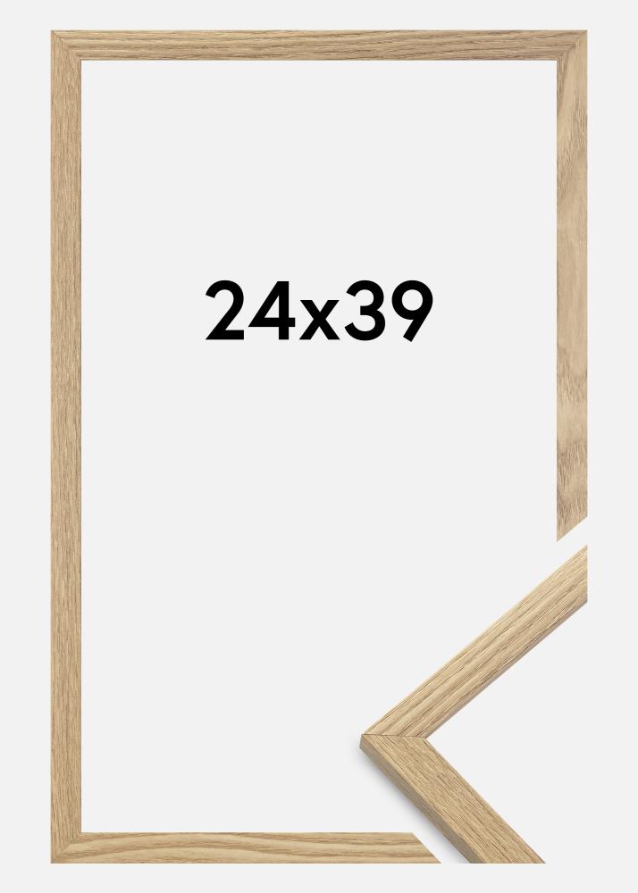 A moldura é feita de material MDF com uma superfície folheada em carvalho e tem um perfil de moldura fino de 14 mm. Há bastante espaço para complementar suas imagens com um passe-partout luxuoso, graças à profundidade interna da moldura de 12 mm.