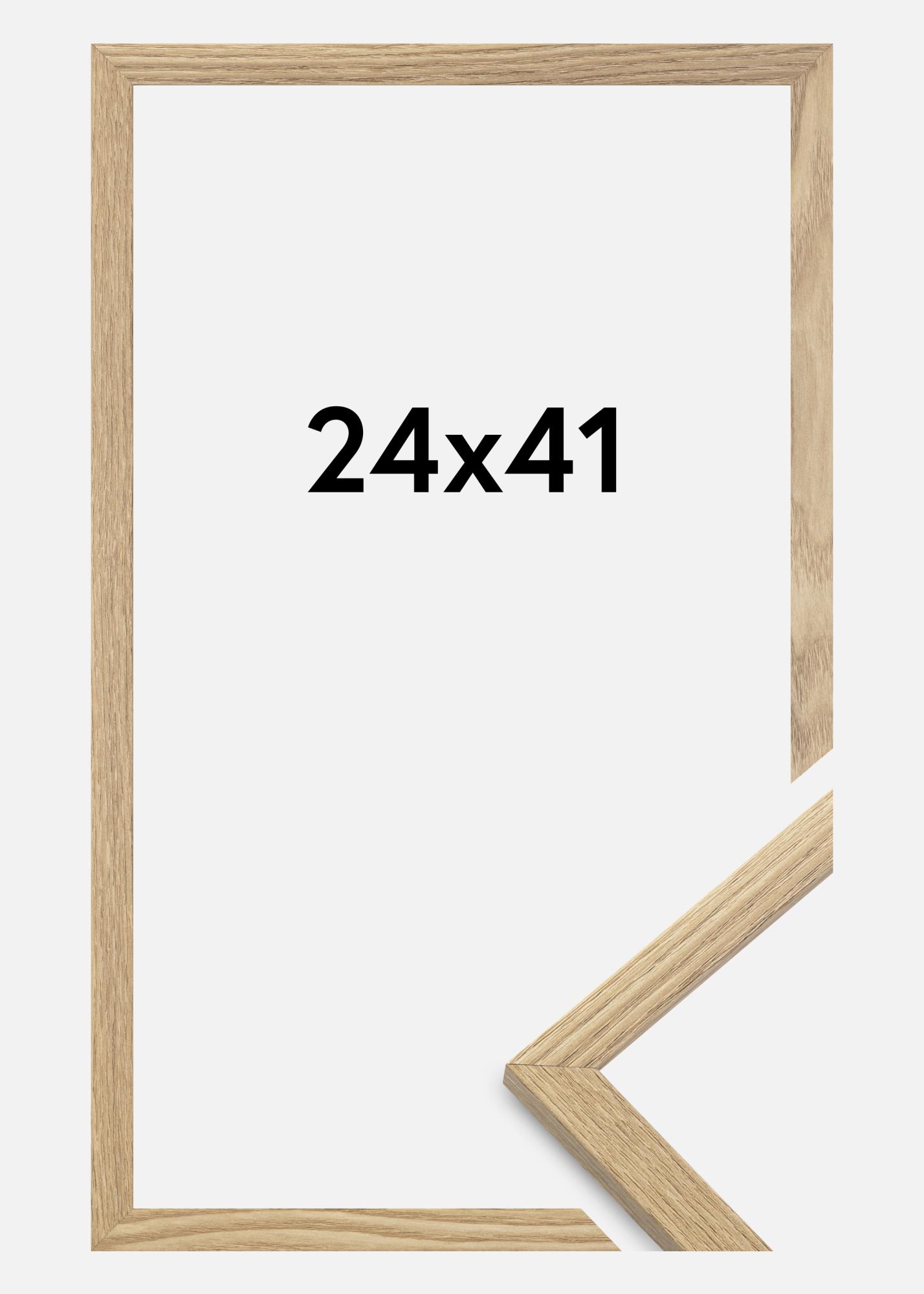 A moldura é feita de material MDF com uma superfície folheada em carvalho e tem um perfil de moldura fino de 14 mm. Há bastante espaço para complementar suas imagens com um passe-partout luxuoso, graças à profundidade interna da moldura de 12 mm.