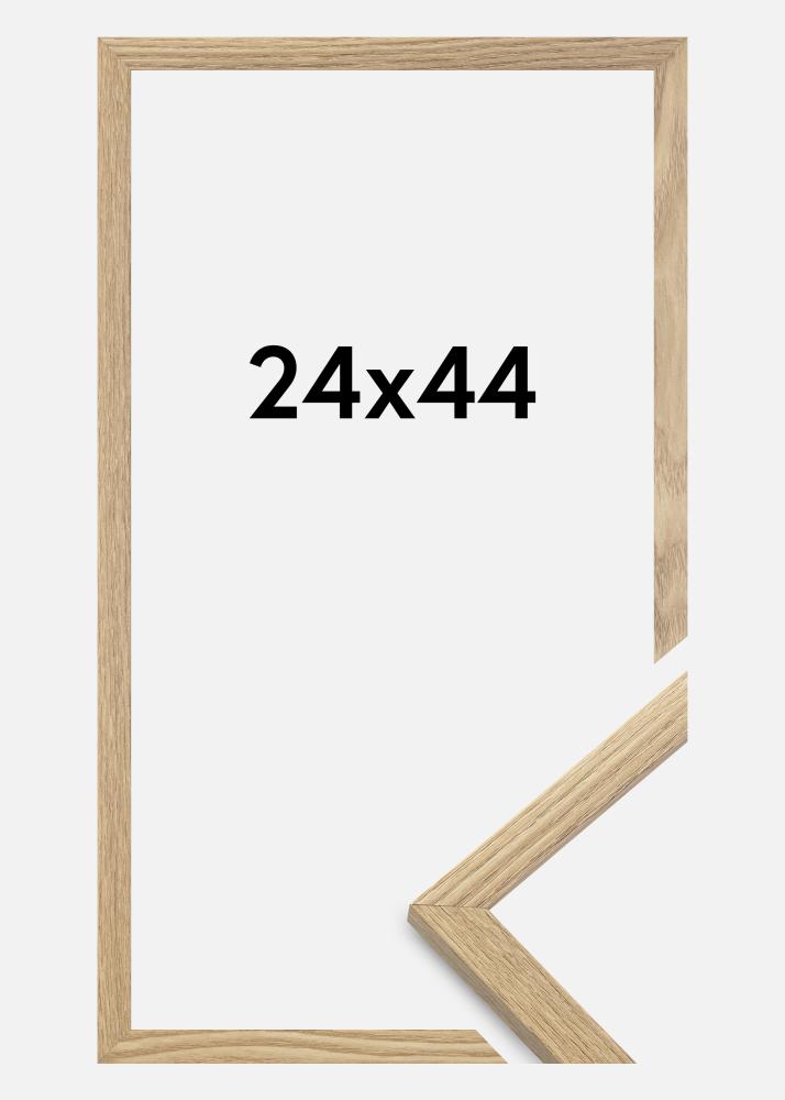 A moldura é feita de material MDF com uma superfície folheada em carvalho e tem um perfil de moldura fino de 14 mm. Há bastante espaço para complementar suas imagens com um passe-partout luxuoso, graças à profundidade interna da moldura de 12 mm.