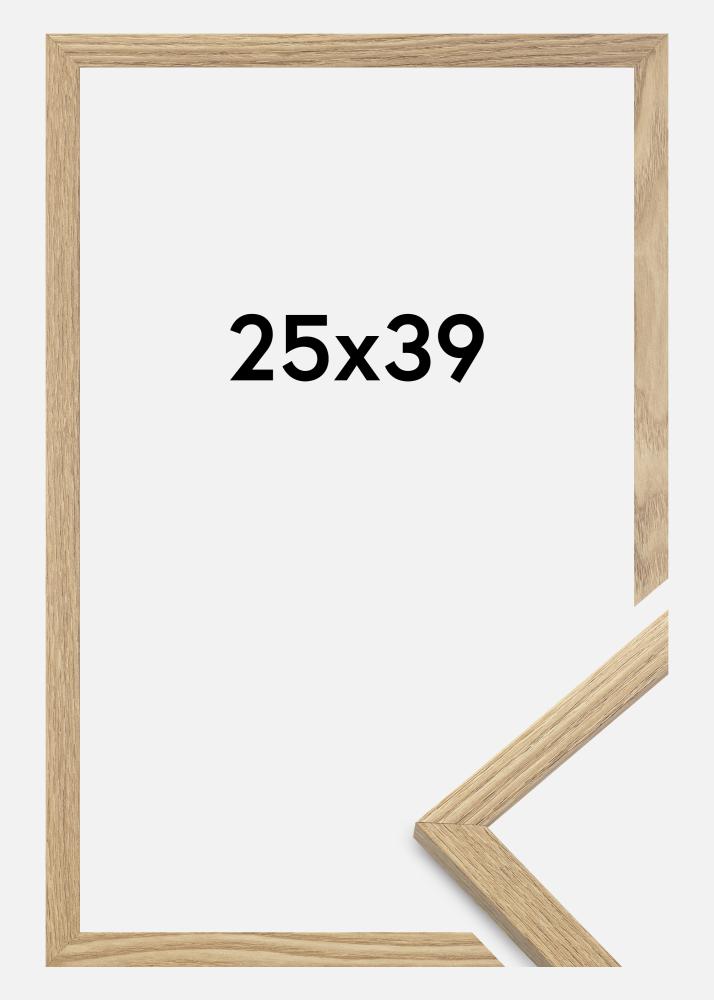 A moldura é feita de material MDF com uma superfície folheada em carvalho e tem um perfil de moldura fino de 14 mm. Há bastante espaço para complementar suas imagens com um passe-partout luxuoso, graças à profundidade interna da moldura de 12 mm.