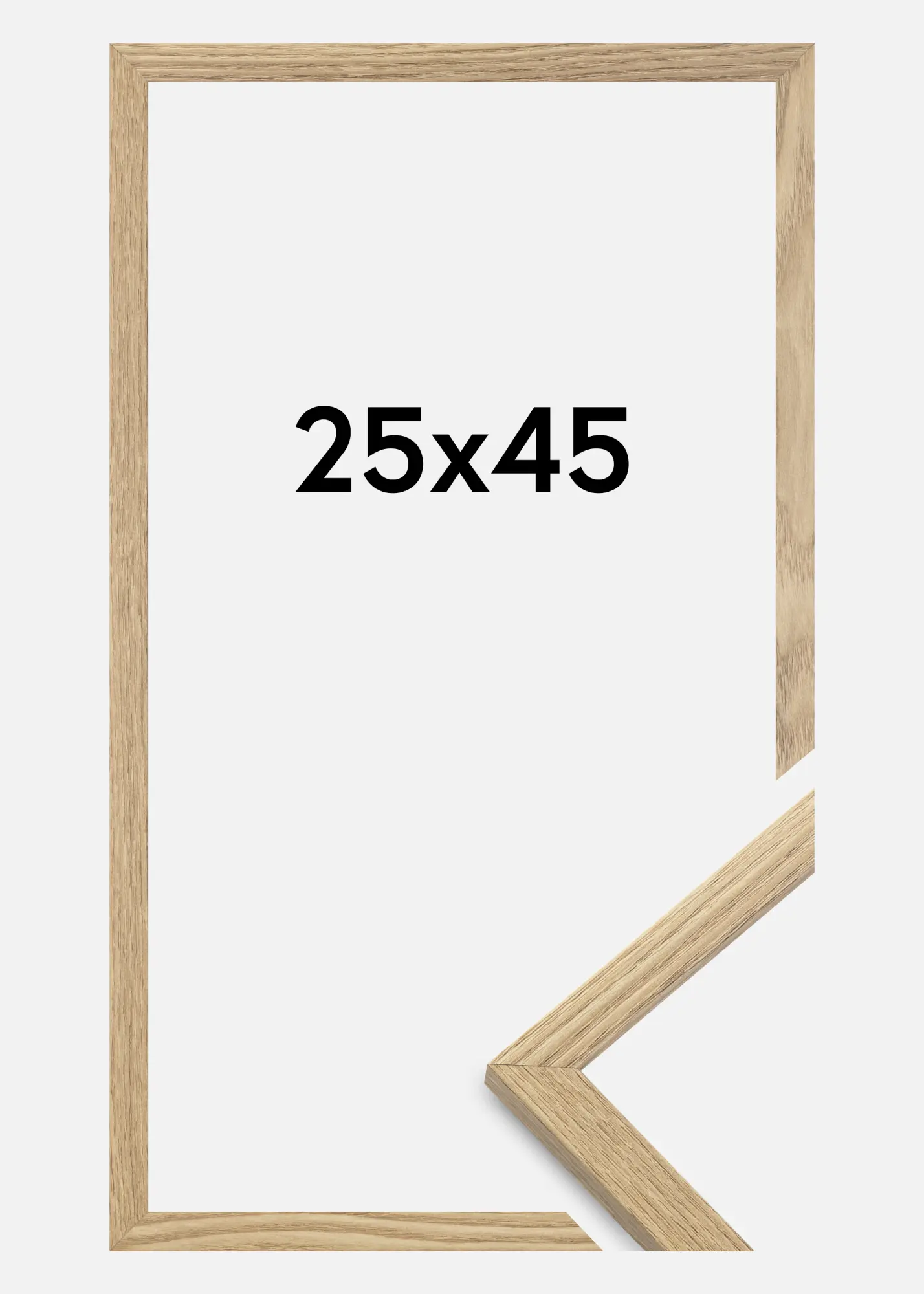 A moldura é feita de material MDF com uma superfície folheada em carvalho e tem um perfil de moldura fino de 14 mm. Há bastante espaço para complementar suas imagens com um passe-partout luxuoso, graças à profundidade interna da moldura de 12 mm.