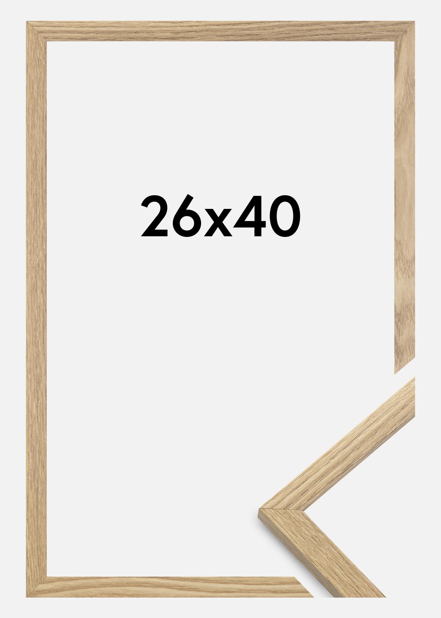 A moldura é feita de material MDF com uma superfície folheada em carvalho e tem um perfil de moldura fino de 14 mm. Há bastante espaço para complementar suas imagens com um passe-partout luxuoso, graças à profundidade interna da moldura de 12 mm.