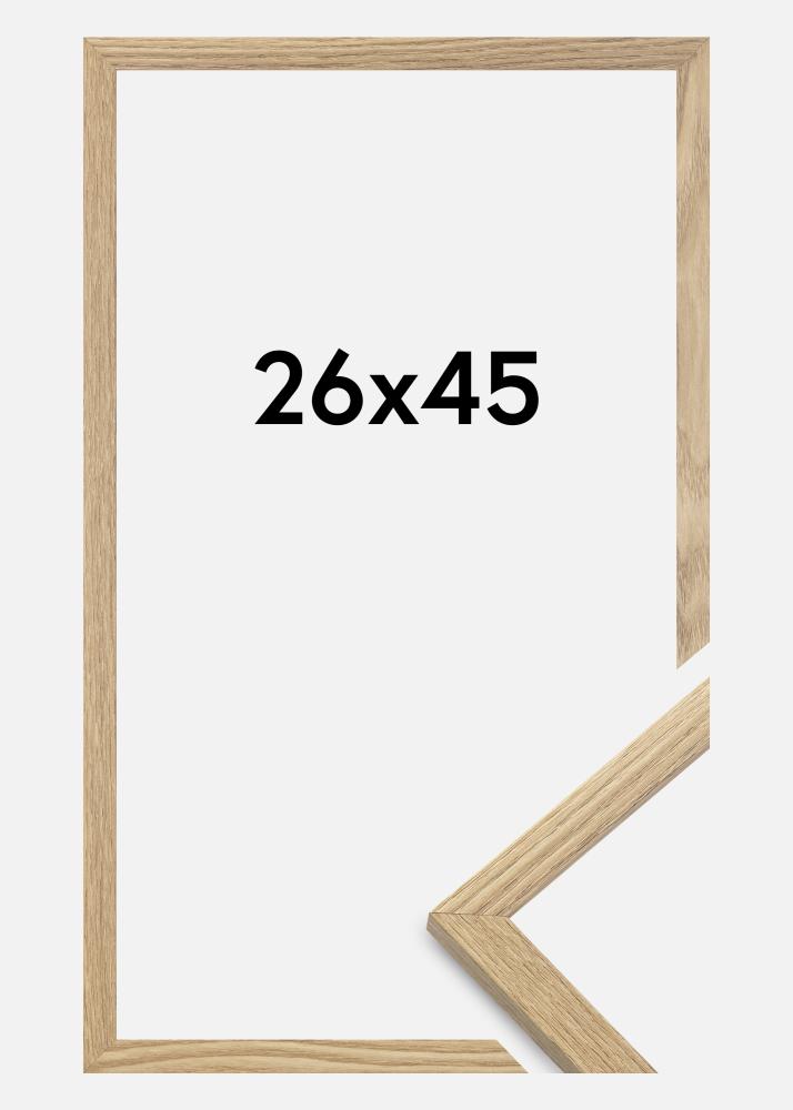 A moldura é feita de material MDF com uma superfície folheada em carvalho e tem um perfil de moldura fino de 14 mm. Há bastante espaço para complementar suas imagens com um passe-partout luxuoso, graças à profundidade interna da moldura de 12 mm.
