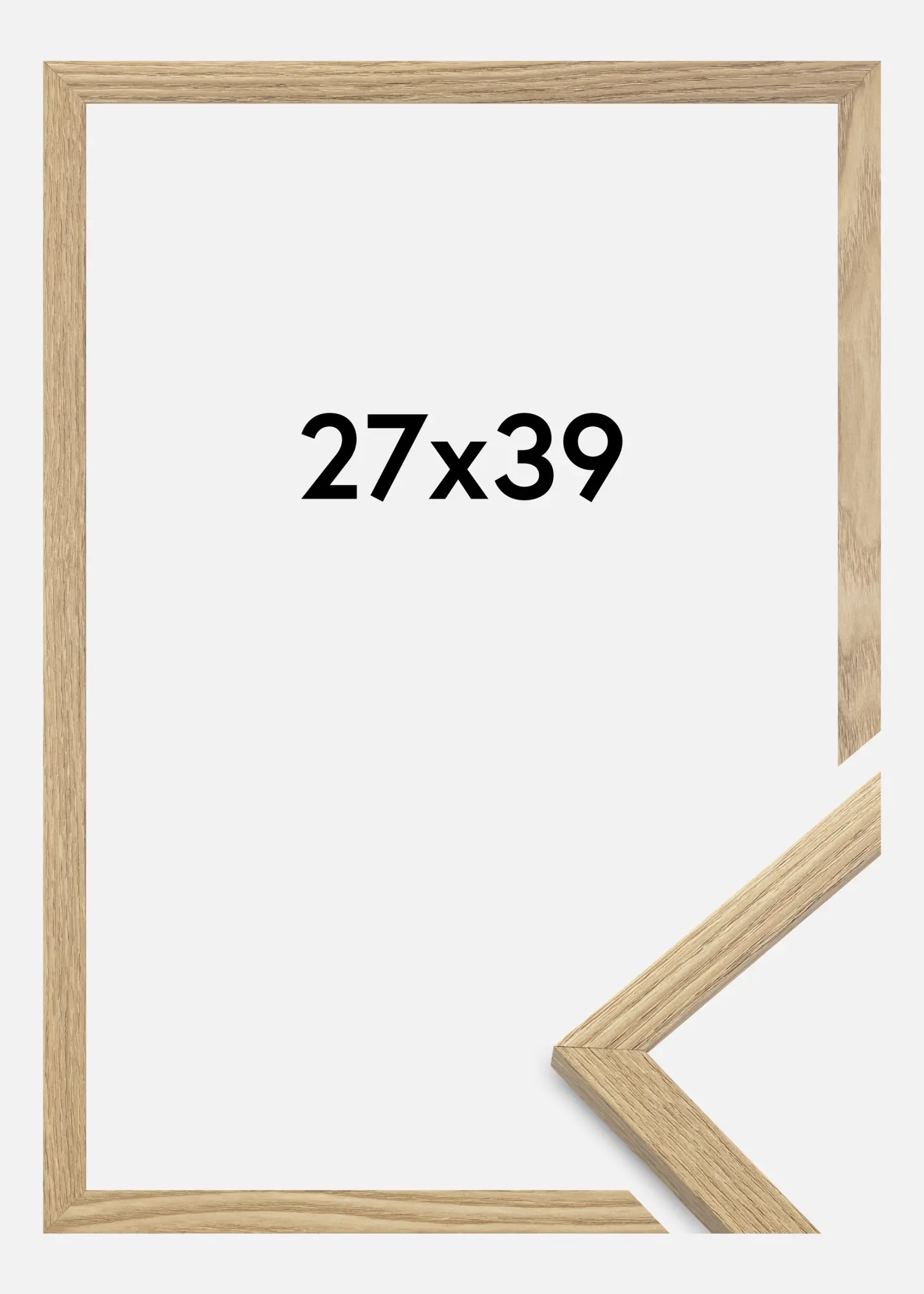 A moldura é feita de material MDF com uma superfície folheada em carvalho e tem um perfil de moldura fino de 14 mm. Há bastante espaço para complementar suas imagens com um passe-partout luxuoso, graças à profundidade interna da moldura de 12 mm.
