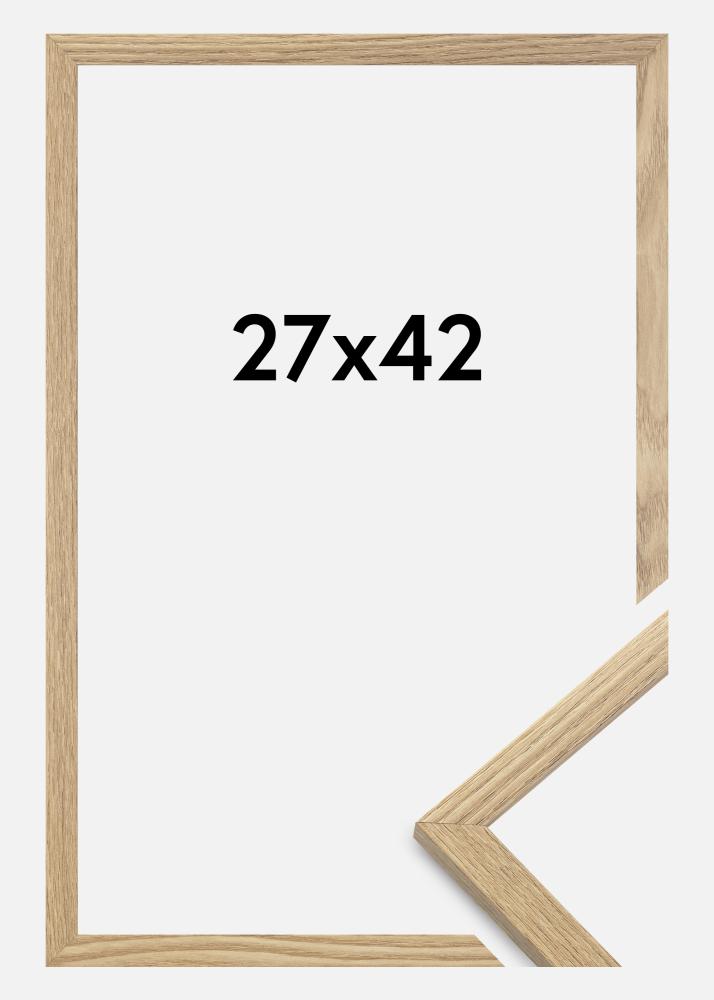A moldura é feita de material MDF com uma superfície folheada em carvalho e tem um perfil de moldura fino de 14 mm. Há bastante espaço para complementar suas imagens com um passe-partout luxuoso, graças à profundidade interna da moldura de 12 mm.