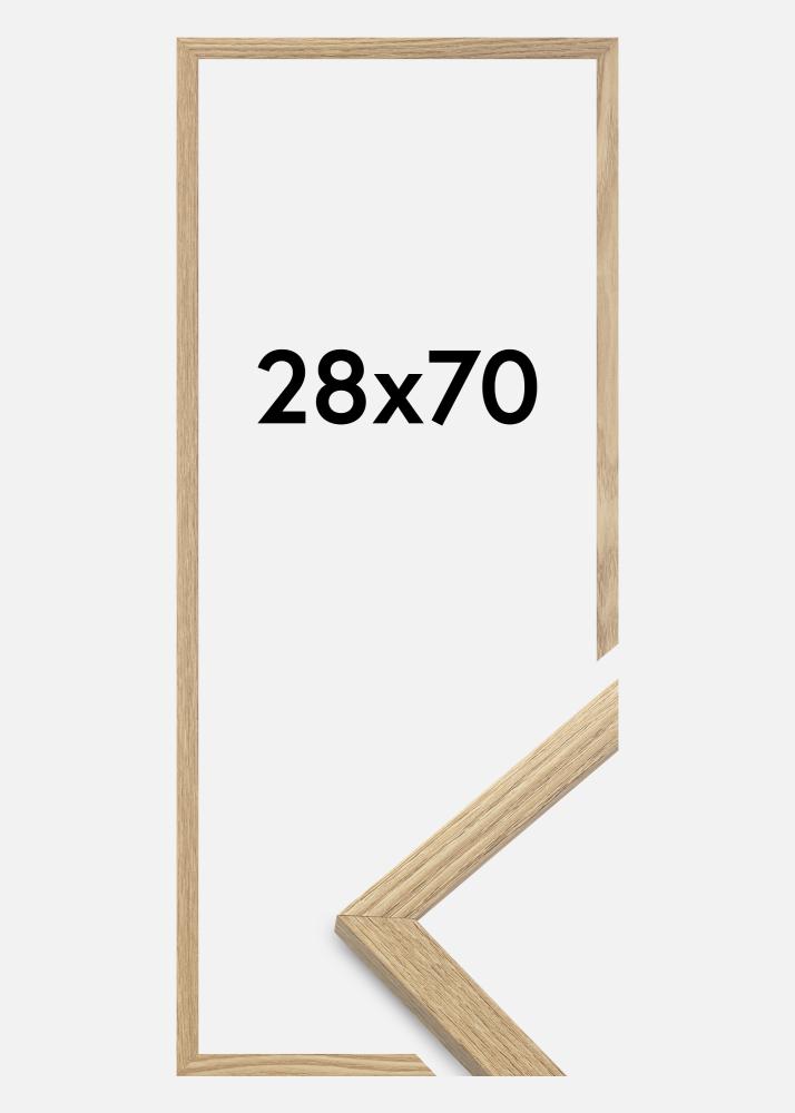 A moldura é feita de material MDF com uma superfície folheada em carvalho e tem um perfil de moldura fino de 14 mm. Há bastante espaço para complementar suas imagens com um passe-partout luxuoso, graças à profundidade interna da moldura de 12 mm.