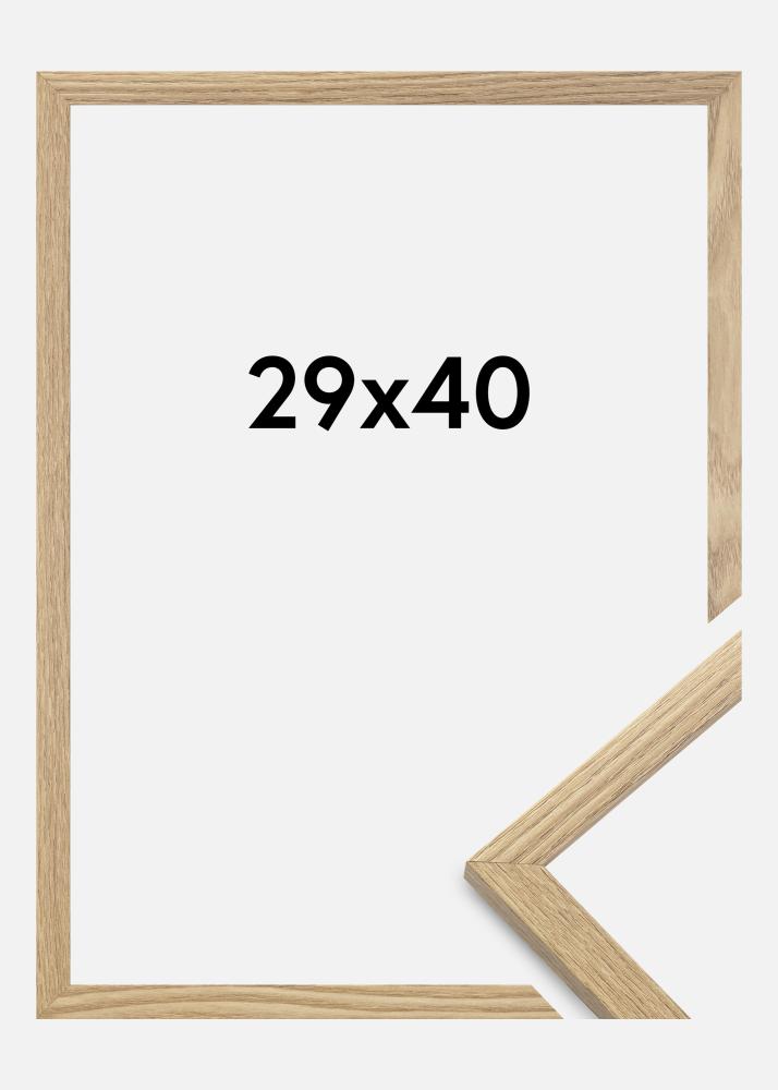 A moldura é feita de material MDF com uma superfície folheada em carvalho e tem um perfil de moldura fino de 14 mm. Há bastante espaço para complementar suas imagens com um passe-partout luxuoso, graças à profundidade interna da moldura de 12 mm.