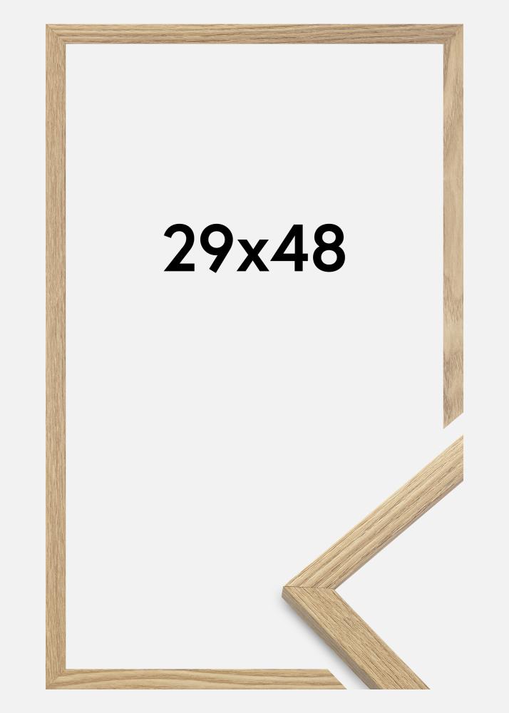 A moldura é feita de material MDF com uma superfície folheada em carvalho e tem um perfil de moldura fino de 14 mm. Há bastante espaço para complementar suas imagens com um passe-partout luxuoso, graças à profundidade interna da moldura de 12 mm.