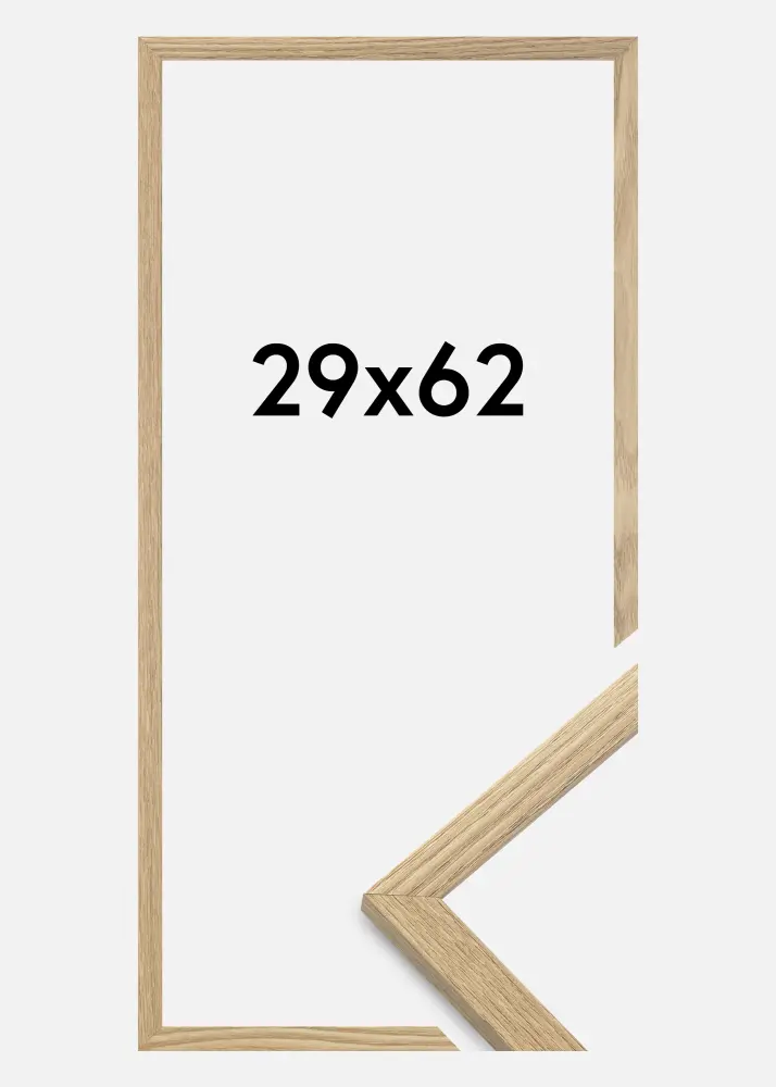 A moldura é feita de material MDF com uma superfície folheada em carvalho e tem um perfil de moldura fino de 14 mm. Há bastante espaço para complementar suas imagens com um passe-partout luxuoso, graças à profundidade interna da moldura de 12 mm.
