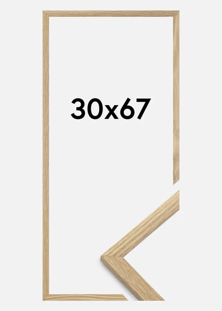 A moldura é feita de material MDF com uma superfície folheada em carvalho e tem um perfil de moldura fino de 14 mm. Há bastante espaço para complementar suas imagens com um passe-partout luxuoso, graças à profundidade interna da moldura de 12 mm.