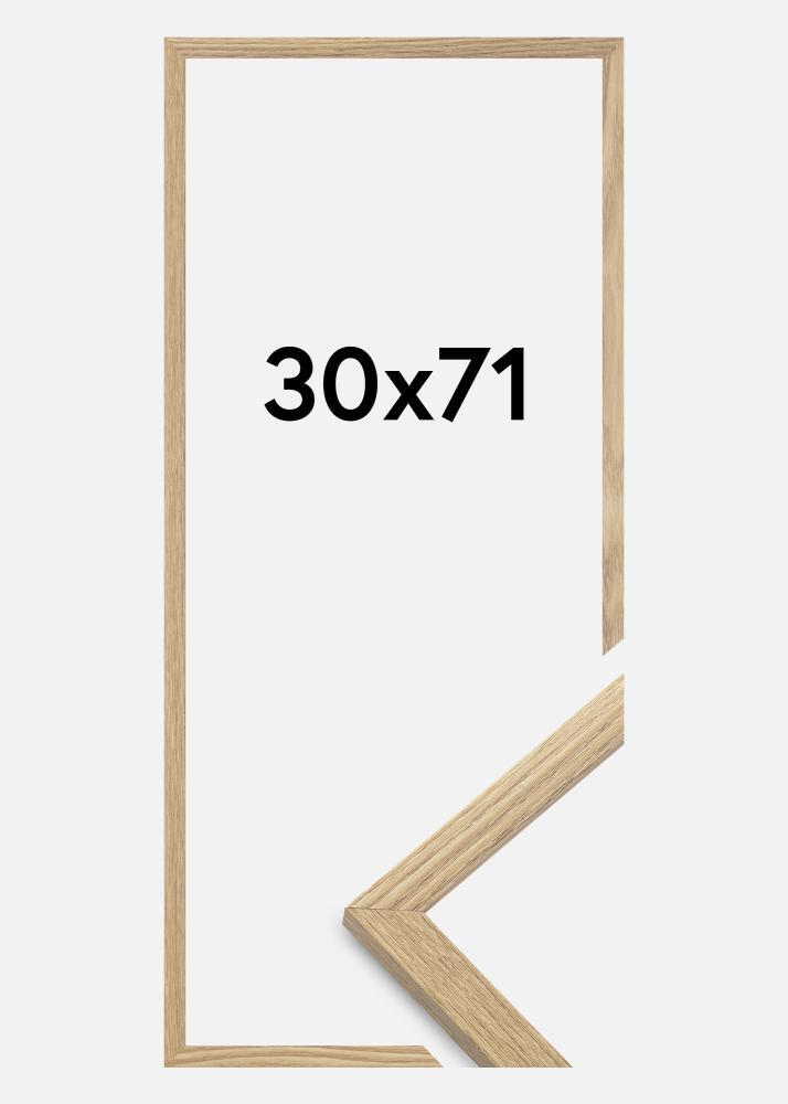 A moldura é feita de material MDF com uma superfície folheada em carvalho e tem um perfil de moldura fino de 14 mm. Há bastante espaço para complementar suas imagens com um passe-partout luxuoso, graças à profundidade interna da moldura de 12 mm.