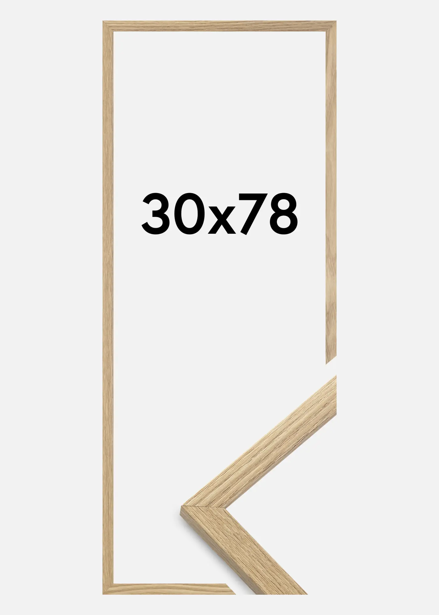 A moldura é feita de material MDF com uma superfície folheada em carvalho e tem um perfil de moldura fino de 14 mm. Há bastante espaço para complementar suas imagens com um passe-partout luxuoso, graças à profundidade interna da moldura de 12 mm.