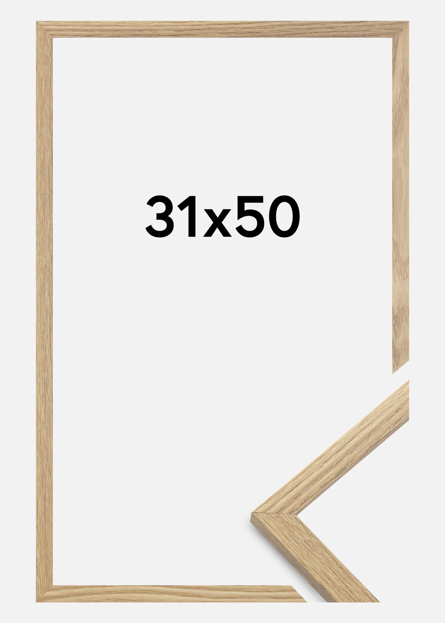 A moldura é feita de material MDF com uma superfície folheada em carvalho e tem um perfil de moldura fino de 14 mm. Há bastante espaço para complementar suas imagens com um passe-partout luxuoso, graças à profundidade interna da moldura de 12 mm.