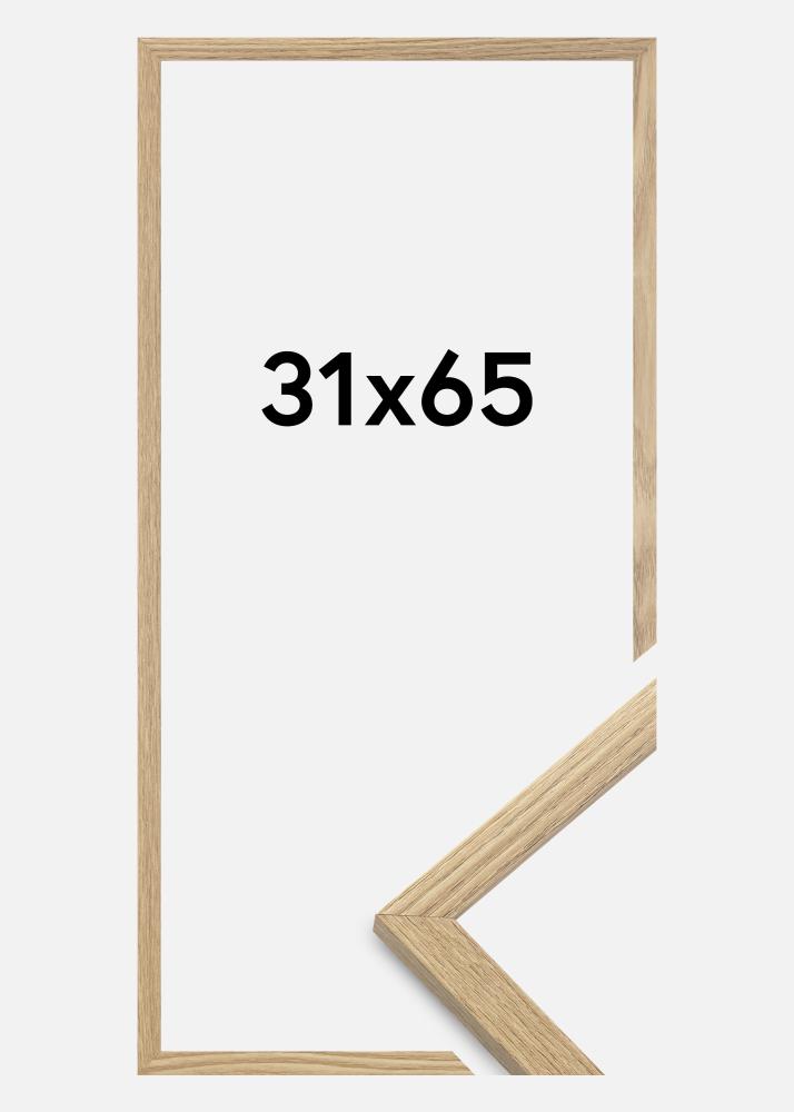 A moldura é feita de material MDF com uma superfície folheada em carvalho e tem um perfil de moldura fino de 14 mm. Há bastante espaço para complementar suas imagens com um passe-partout luxuoso, graças à profundidade interna da moldura de 12 mm.