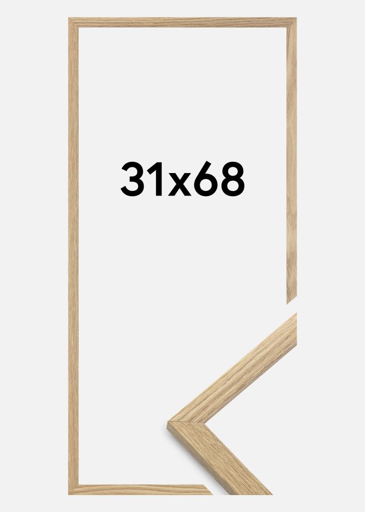 A moldura é feita de material MDF com uma superfície folheada em carvalho e tem um perfil de moldura fino de 14 mm. Há bastante espaço para complementar suas imagens com um passe-partout luxuoso, graças à profundidade interna da moldura de 12 mm.