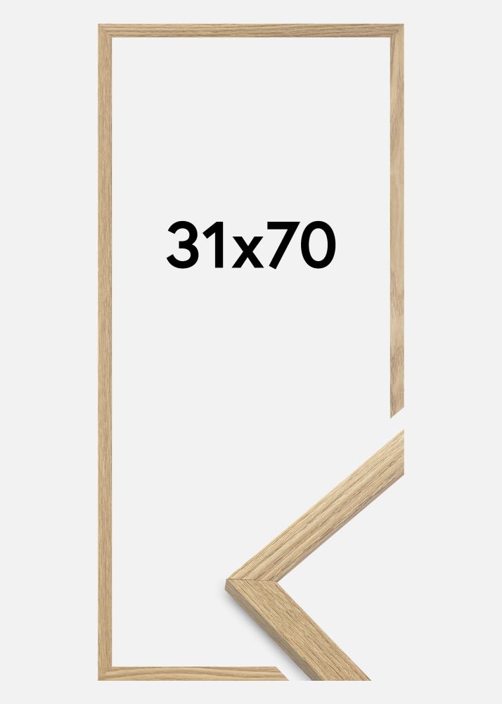 A moldura é feita de material MDF com uma superfície folheada em carvalho e tem um perfil de moldura fino de 14 mm. Há bastante espaço para complementar suas imagens com um passe-partout luxuoso, graças à profundidade interna da moldura de 12 mm.