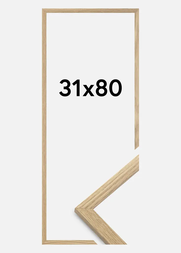A moldura é feita de material MDF com uma superfície folheada em carvalho e tem um perfil de moldura fino de 14 mm. Há bastante espaço para complementar suas imagens com um passe-partout luxuoso, graças à profundidade interna da moldura de 12 mm.