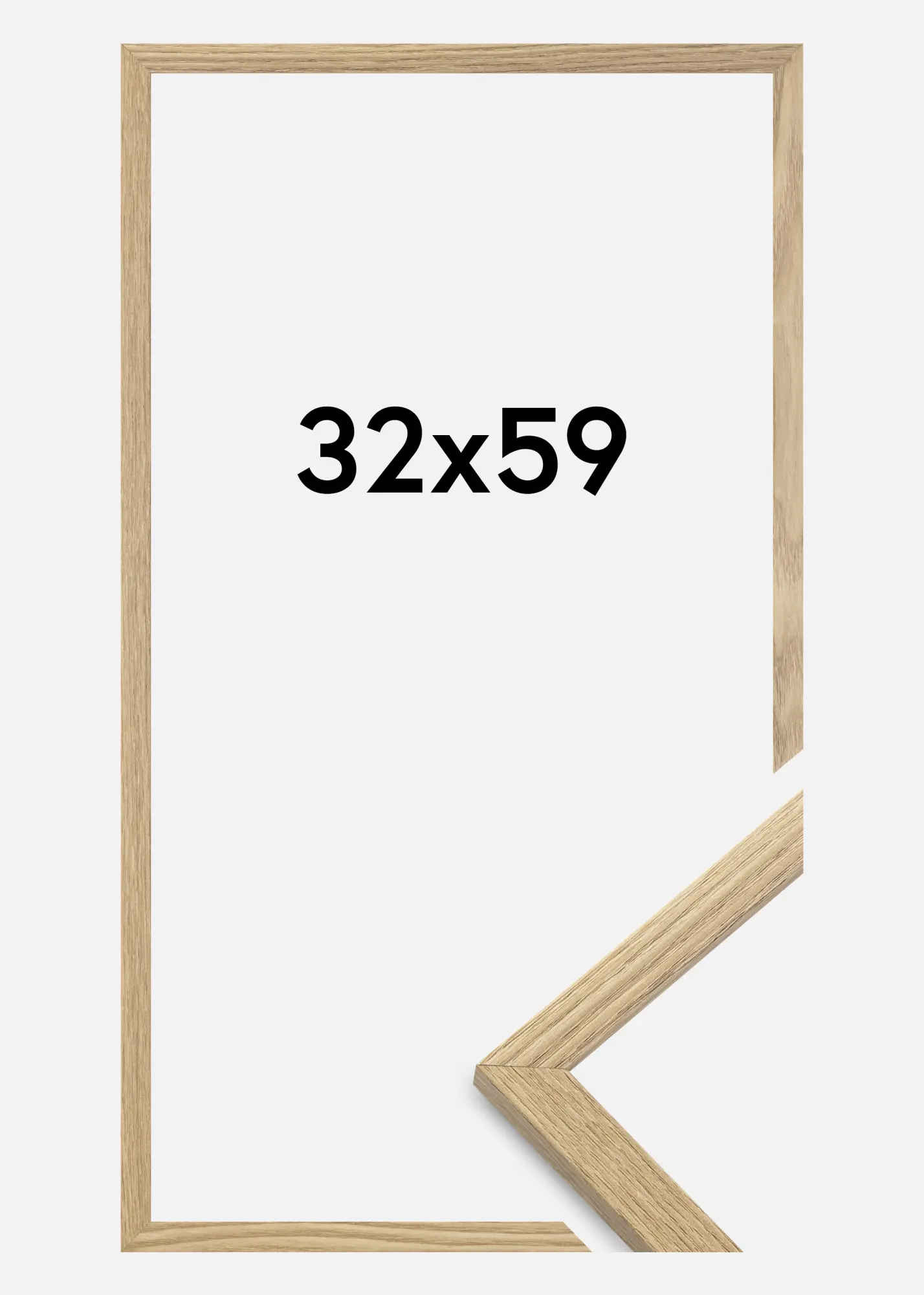 A moldura é feita de material MDF com uma superfície folheada em carvalho e tem um perfil de moldura fino de 14 mm. Há bastante espaço para complementar suas imagens com um passe-partout luxuoso, graças à profundidade interna da moldura de 12 mm.