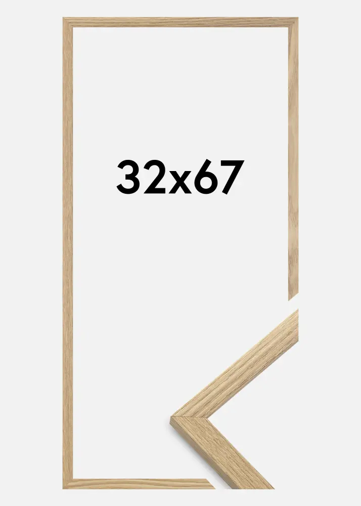 A moldura é feita de material MDF com uma superfície folheada em carvalho e tem um perfil de moldura fino de 14 mm. Há bastante espaço para complementar suas imagens com um passe-partout luxuoso, graças à profundidade interna da moldura de 12 mm.