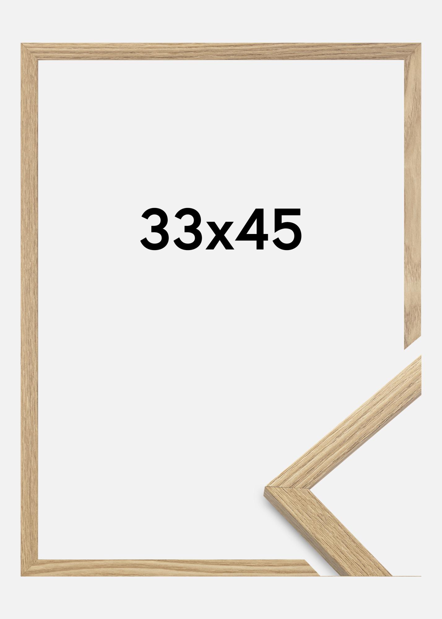 Esta elegante moldura fotográfica com acabamento em cor de carvalho é uma excelente escolha para dar às suas fotos uma moldura quente e natural. Com um tamanho de 33x45 cm, encaixa-se perfeitamente para destacar fotografias, obras de arte e cartazes de forma elegante. O perfil estreito e design minimalista permitem que se integre facilmente em estilos de decoração clássicos e escandinavos.