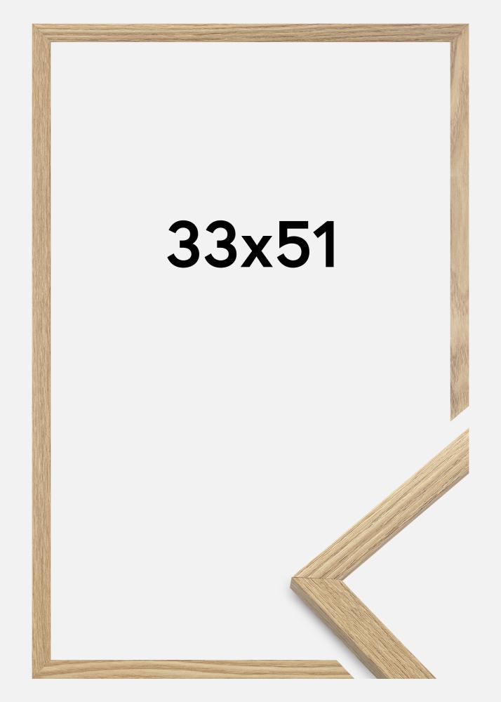 A moldura é feita de material MDF com uma superfície folheada em carvalho e tem um perfil de moldura fino de 14 mm. Há bastante espaço para complementar suas imagens com um passe-partout luxuoso, graças à profundidade interna da moldura de 12 mm.