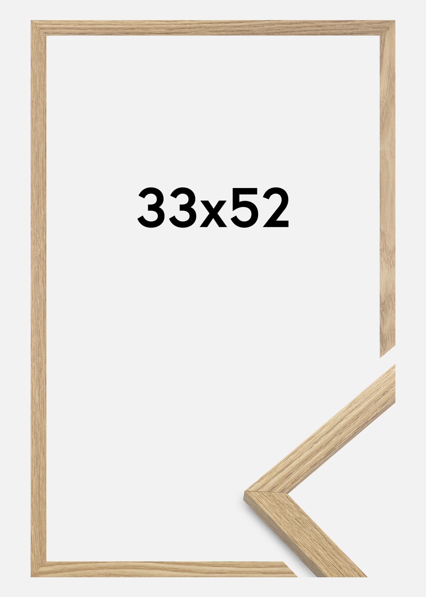 A moldura é feita de material MDF com uma superfície folheada em carvalho e tem um perfil de moldura fino de 14 mm. Há bastante espaço para complementar suas imagens com um passe-partout luxuoso, graças à profundidade interna da moldura de 12 mm.