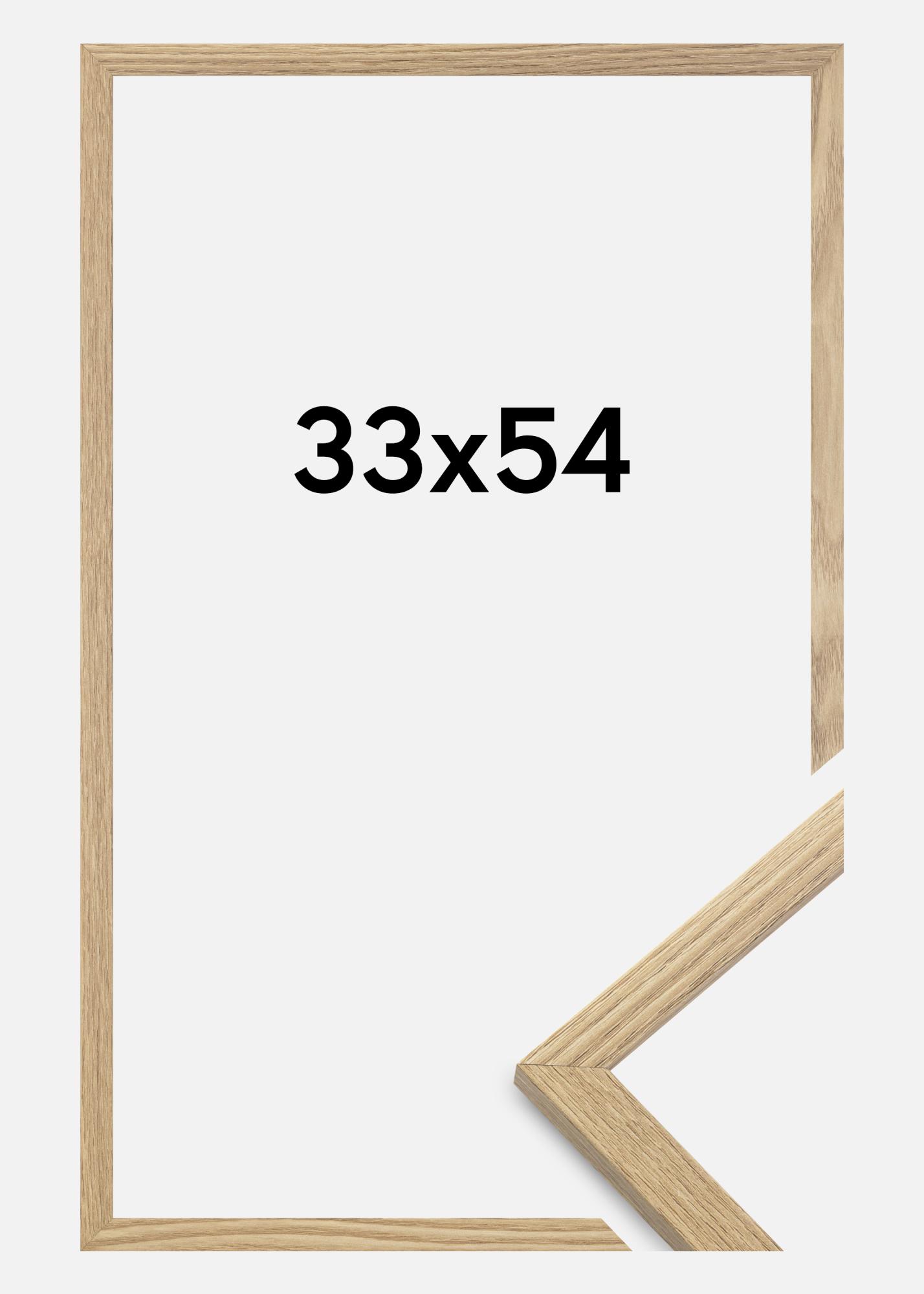 A moldura é feita de material MDF com uma superfície folheada em carvalho e tem um perfil de moldura fino de 14 mm. Há bastante espaço para complementar suas imagens com um passe-partout luxuoso, graças à profundidade interna da moldura de 12 mm.