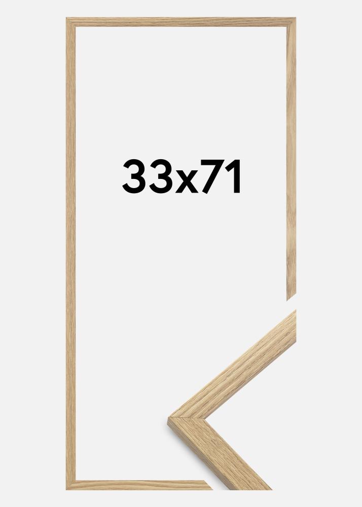 A moldura é feita de material MDF com uma superfície folheada em carvalho e tem um perfil de moldura fino de 14 mm. Há bastante espaço para complementar suas imagens com um passe-partout luxuoso, graças à profundidade interna da moldura de 12 mm.