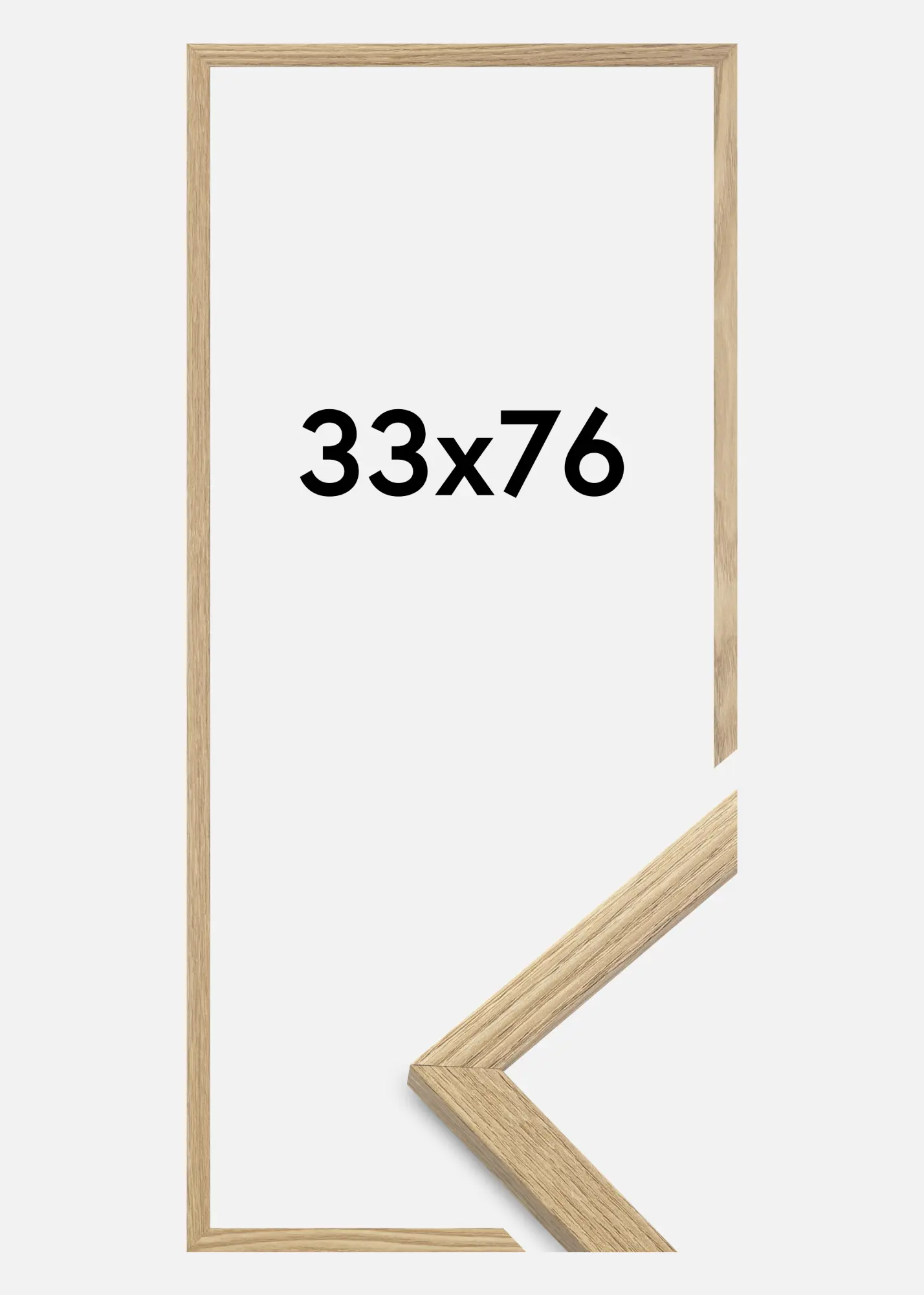 A moldura é feita de material MDF com uma superfície folheada em carvalho e tem um perfil de moldura fino de 14 mm. Há bastante espaço para complementar suas imagens com um passe-partout luxuoso, graças à profundidade interna da moldura de 12 mm.
