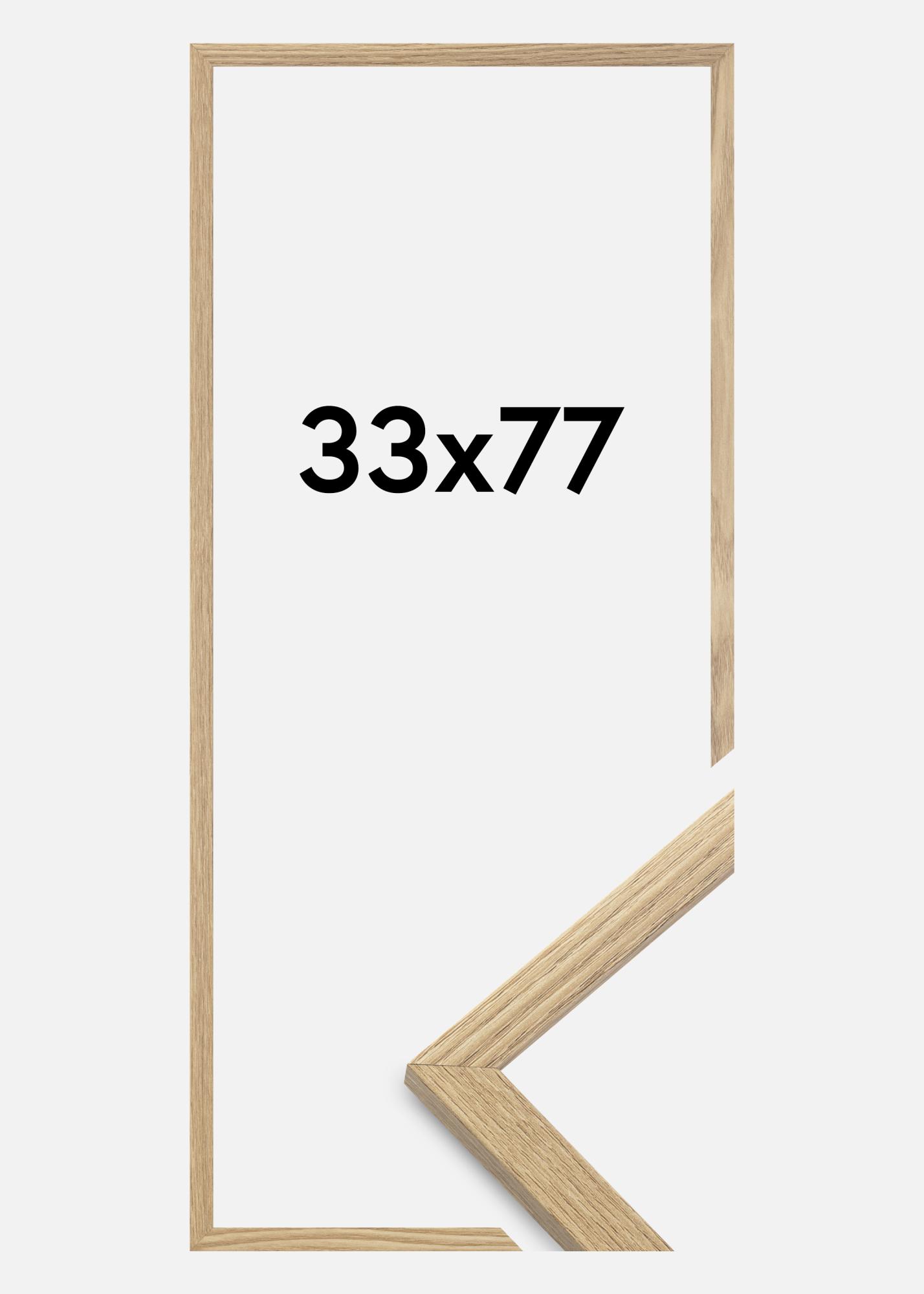 A moldura é feita de material MDF com uma superfície folheada em carvalho e tem um perfil de moldura fino de 14 mm. Há bastante espaço para complementar suas imagens com um passe-partout luxuoso, graças à profundidade interna da moldura de 12 mm.