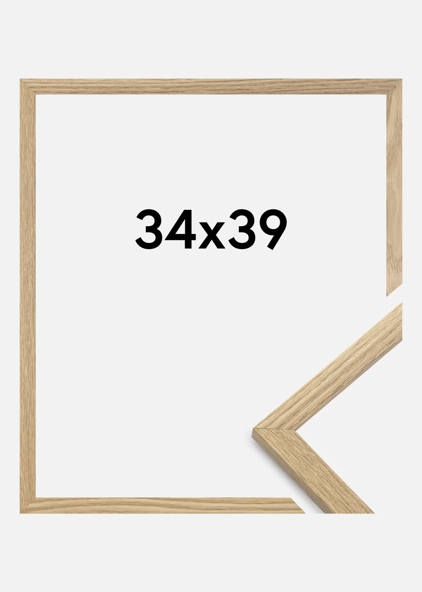 A moldura é feita de material MDF com uma superfície folheada em carvalho e tem um perfil de moldura fino de 14 mm. Há bastante espaço para complementar suas imagens com um passe-partout luxuoso, graças à profundidade interna da moldura de 12 mm.