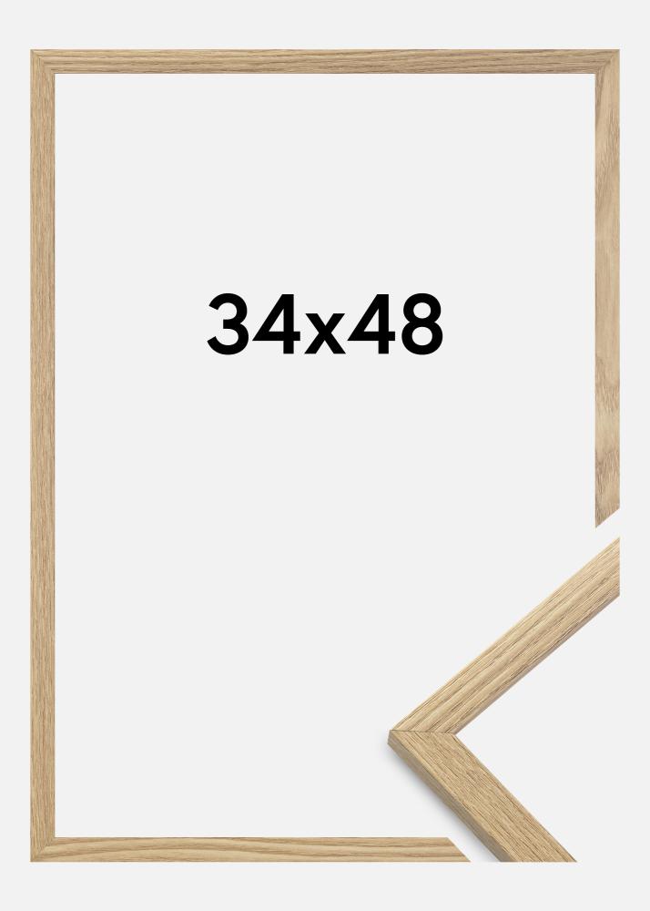 A moldura é feita de material MDF com uma superfície folheada em carvalho e tem um perfil de moldura fino de 14 mm. Há bastante espaço para complementar suas imagens com um passe-partout luxuoso, graças à profundidade interna da moldura de 12 mm.