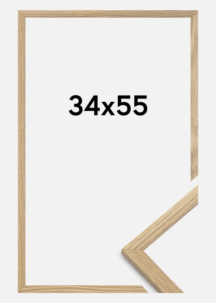 A moldura é feita de material MDF com uma superfície folheada em carvalho e tem um perfil de moldura fino de 14 mm. Há bastante espaço para complementar suas imagens com um passe-partout luxuoso, graças à profundidade interna da moldura de 12 mm.