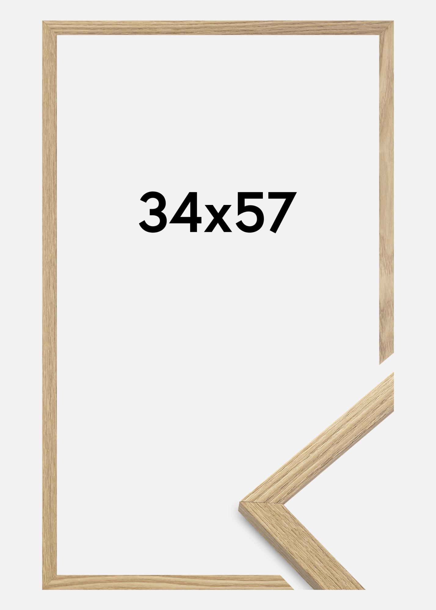 A moldura é feita de material MDF com uma superfície folheada em carvalho e tem um perfil de moldura fino de 14 mm. Há bastante espaço para complementar suas imagens com um passe-partout luxuoso, graças à profundidade interna da moldura de 12 mm.