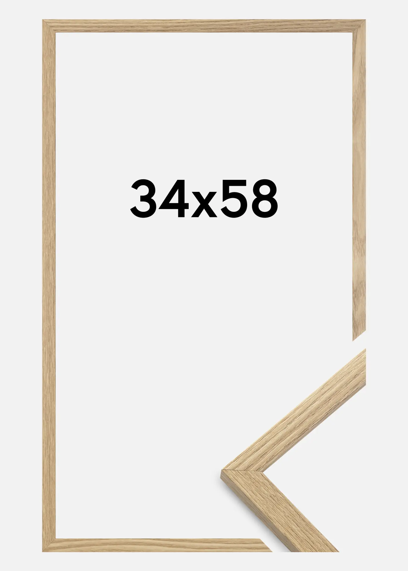 A moldura é feita de material MDF com uma superfície folheada em carvalho e tem um perfil de moldura fino de 14 mm. Há bastante espaço para complementar suas imagens com um passe-partout luxuoso, graças à profundidade interna da moldura de 12 mm.