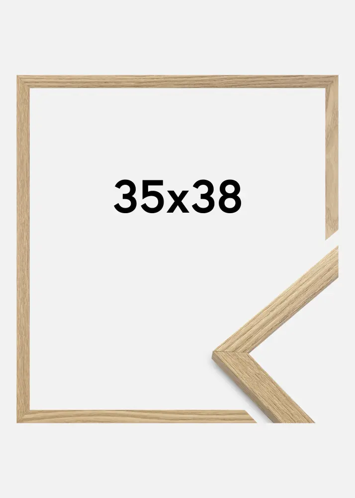 A moldura é feita de material MDF com uma superfície folheada em carvalho e tem um perfil de moldura fino de 14 mm. Há bastante espaço para complementar suas imagens com um passe-partout luxuoso, graças à profundidade interna da moldura de 12 mm.
