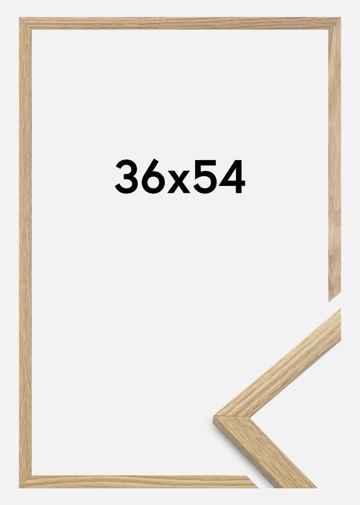 A moldura é feita de material MDF com uma superfície folheada em carvalho e tem um perfil de moldura fino de 14 mm. Há bastante espaço para complementar suas imagens com um passe-partout luxuoso, graças à profundidade interna da moldura de 12 mm.