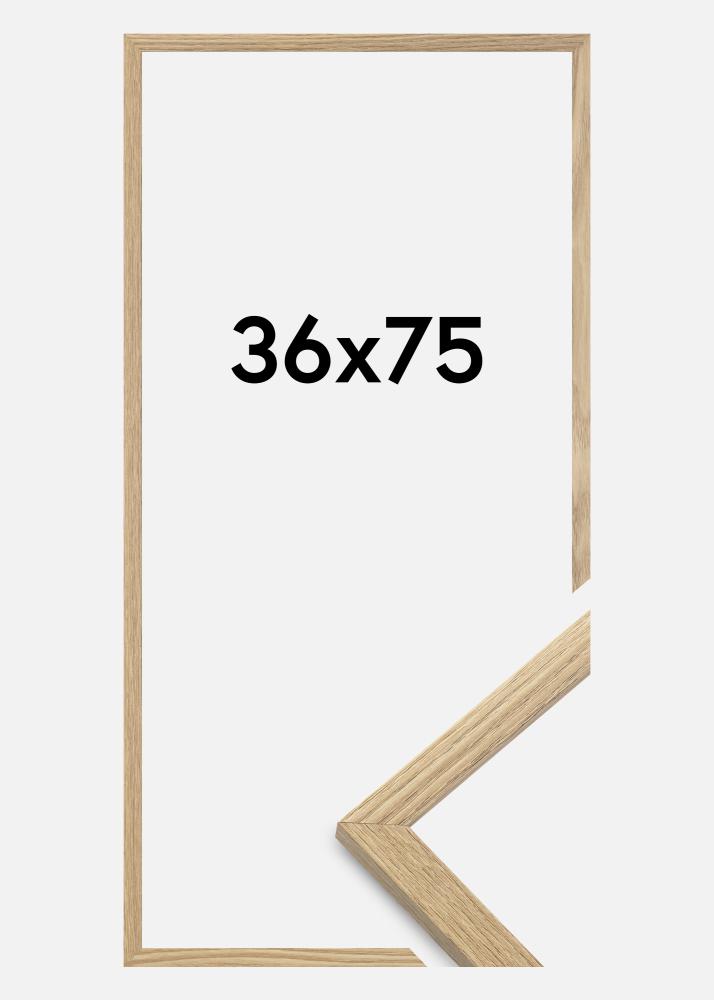 A moldura é feita de material MDF com uma superfície folheada em carvalho e tem um perfil de moldura fino de 14 mm. Há bastante espaço para complementar suas imagens com um passe-partout luxuoso, graças à profundidade interna da moldura de 12 mm.