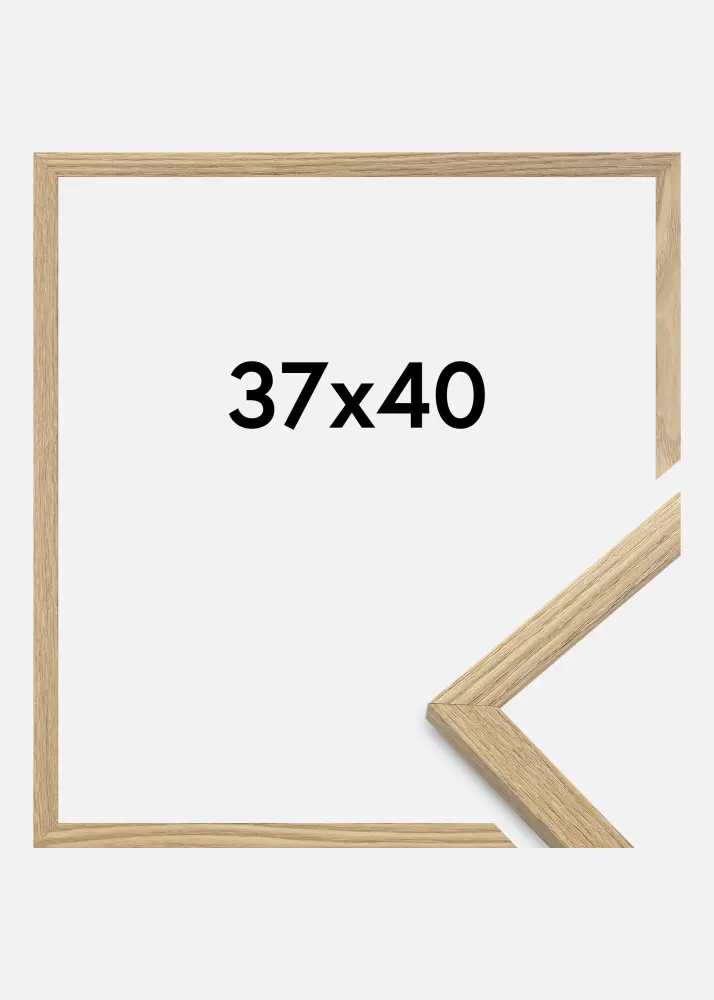 A moldura é feita de material MDF com uma superfície folheada em carvalho e tem um perfil de moldura fino de 14 mm. Há bastante espaço para complementar suas imagens com um passe-partout luxuoso, graças à profundidade interna da moldura de 12 mm.