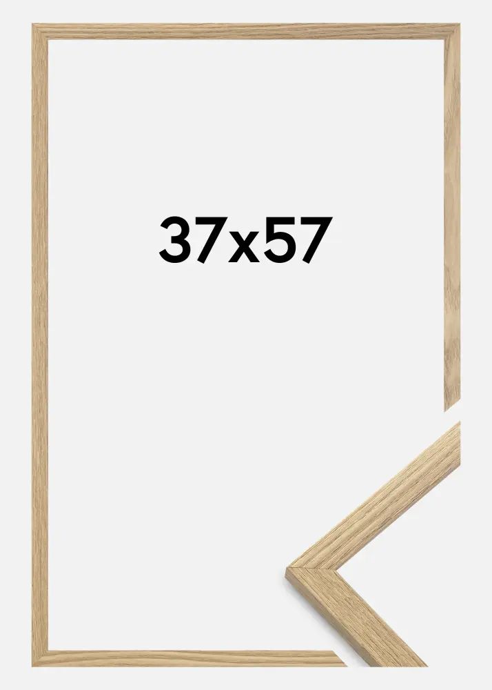 A moldura é feita de material MDF com uma superfície folheada em carvalho e tem um perfil de moldura fino de 14 mm. Há bastante espaço para complementar suas imagens com um passe-partout luxuoso, graças à profundidade interna da moldura de 12 mm.