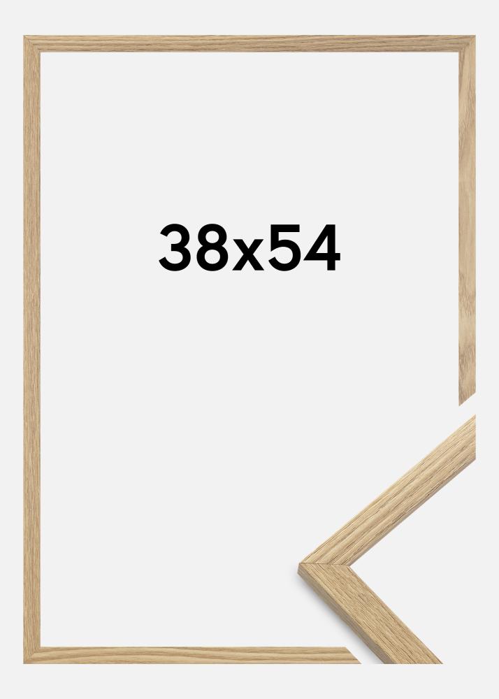 A moldura é feita de material MDF com uma superfície folheada em carvalho e tem um perfil de moldura fino de 14 mm. Há bastante espaço para complementar suas imagens com um passe-partout luxuoso, graças à profundidade interna da moldura de 12 mm.
