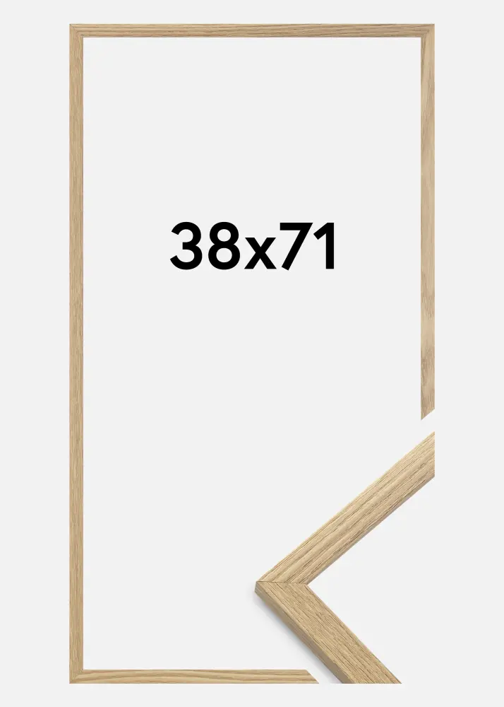 A moldura é feita de material MDF com uma superfície folheada em carvalho e tem um perfil de moldura fino de 14 mm. Há bastante espaço para complementar suas imagens com um passe-partout luxuoso, graças à profundidade interna da moldura de 12 mm.