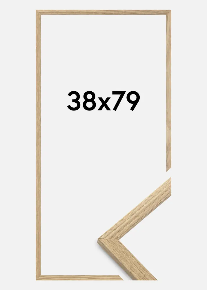 A moldura é feita de material MDF com uma superfície folheada em carvalho e tem um perfil de moldura fino de 14 mm. Há bastante espaço para complementar suas imagens com um passe-partout luxuoso, graças à profundidade interna da moldura de 12 mm.