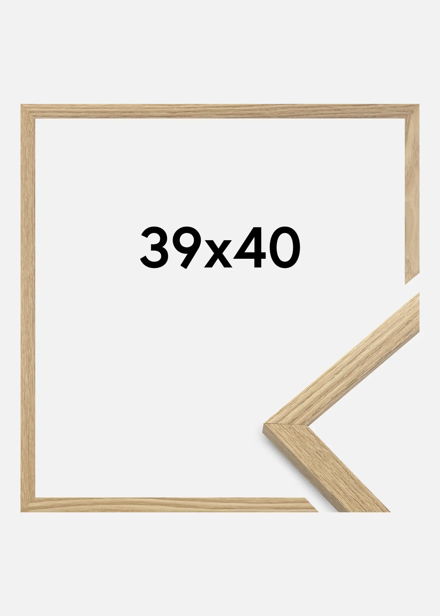 A moldura é feita de material MDF com uma superfície folheada em carvalho e tem um perfil de moldura fino de 14 mm. Há bastante espaço para complementar suas imagens com um passe-partout luxuoso, graças à profundidade interna da moldura de 12 mm.