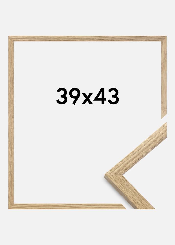 A moldura é feita de material MDF com uma superfície folheada em carvalho e tem um perfil de moldura fino de 14 mm. Há bastante espaço para complementar suas imagens com um passe-partout luxuoso, graças à profundidade interna da moldura de 12 mm.