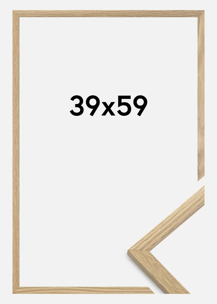 A moldura é feita de material MDF com uma superfície folheada em carvalho e tem um perfil de moldura fino de 14 mm. Há bastante espaço para complementar suas imagens com um passe-partout luxuoso, graças à profundidade interna da moldura de 12 mm.