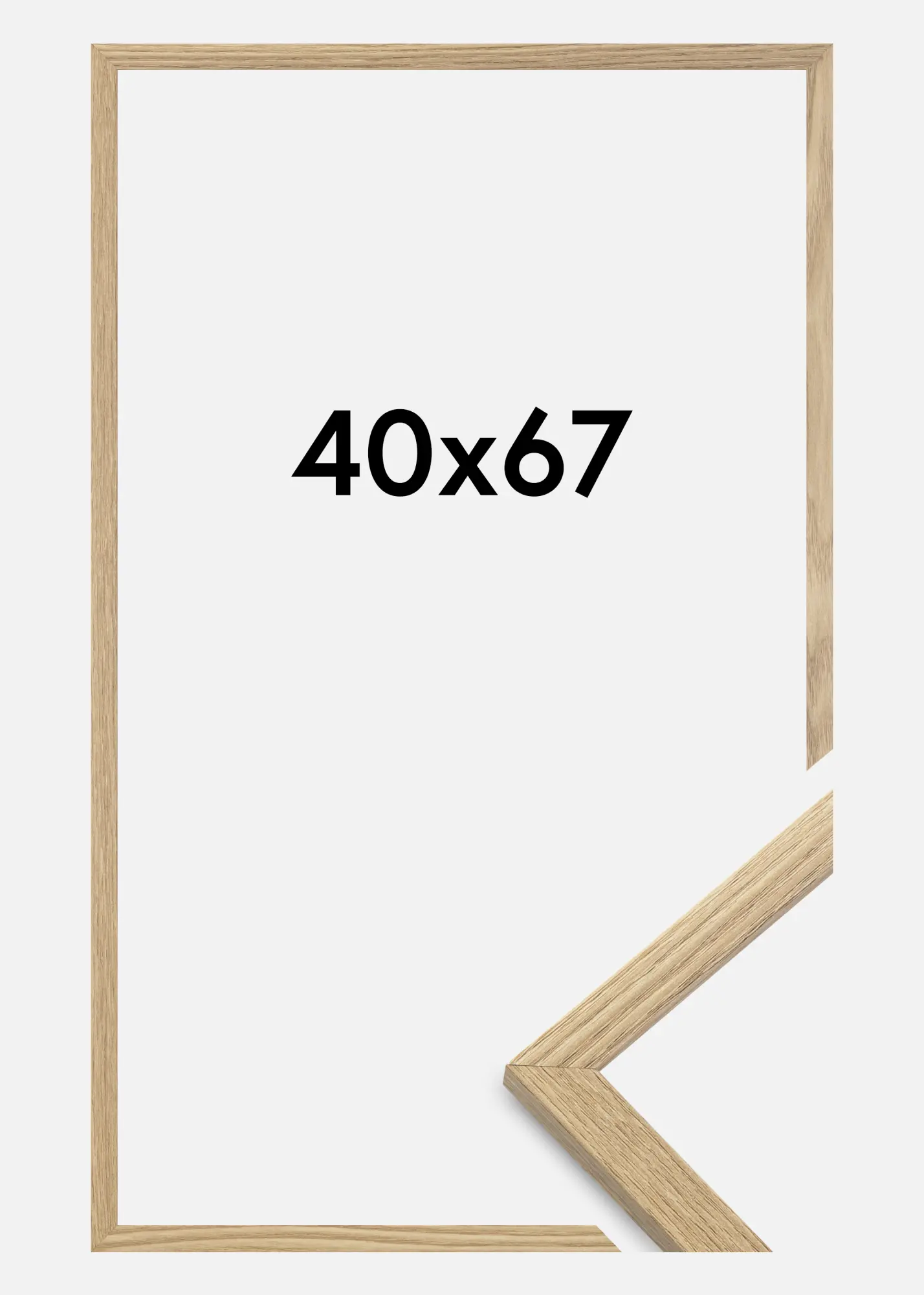 A moldura é feita de material MDF com uma superfície folheada em carvalho e tem um perfil de moldura fino de 14 mm. Há bastante espaço para complementar suas imagens com um passe-partout luxuoso, graças à profundidade interna da moldura de 12 mm.