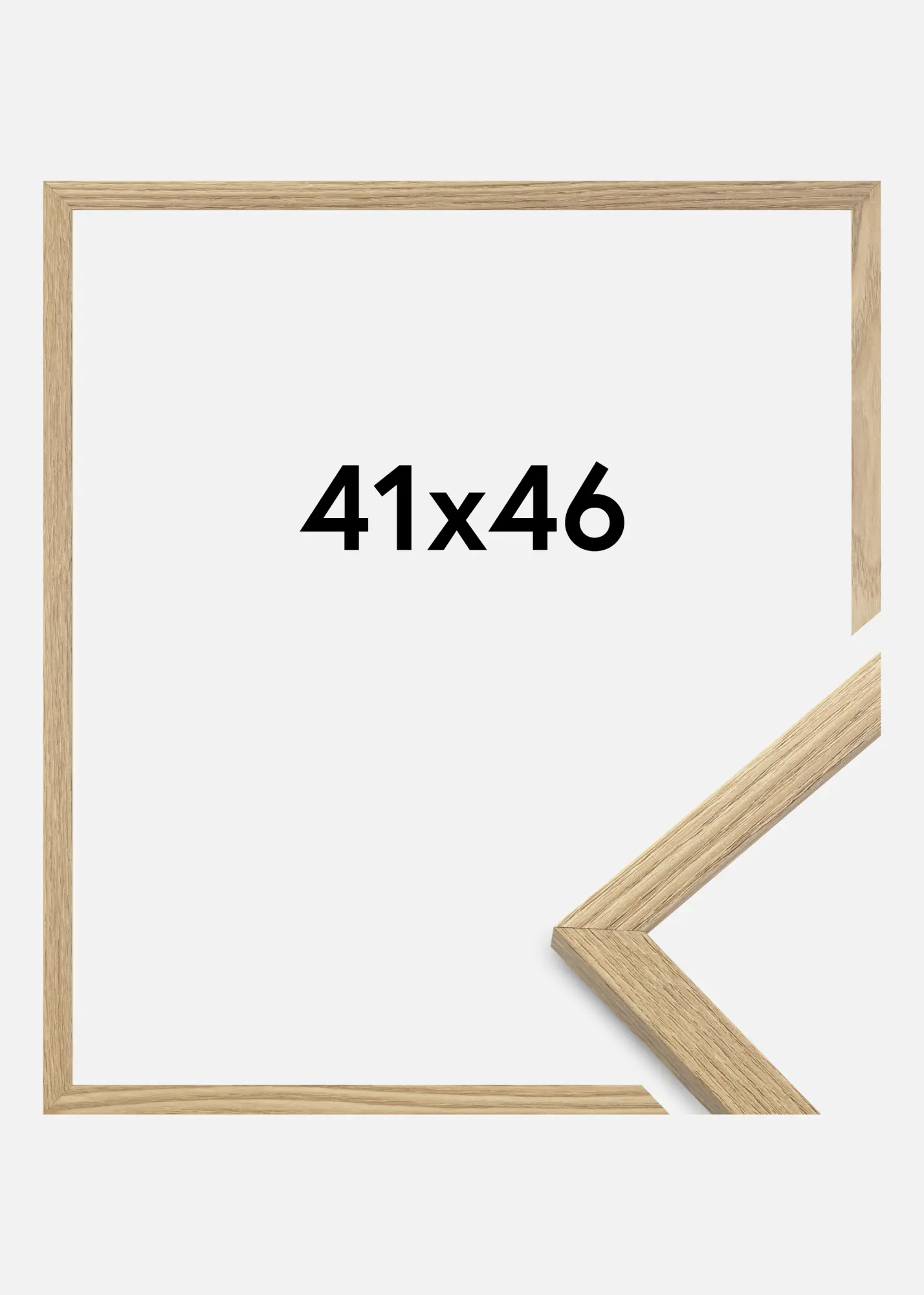 A moldura é feita de material MDF com uma superfície folheada em carvalho e tem um perfil de moldura fino de 14 mm. Há bastante espaço para complementar suas imagens com um passe-partout luxuoso, graças à profundidade interna da moldura de 12 mm.