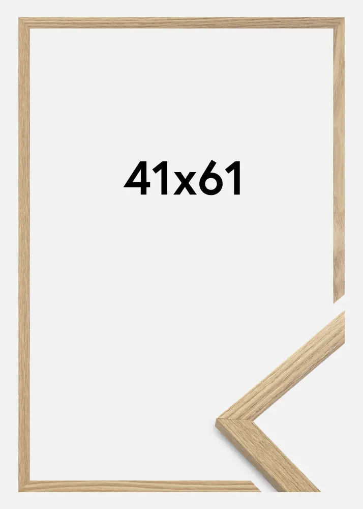 A moldura é feita de material MDF com uma superfície folheada em carvalho e tem um perfil de moldura fino de 14 mm. Há bastante espaço para complementar suas imagens com um passe-partout luxuoso, graças à profundidade interna da moldura de 12 mm.
